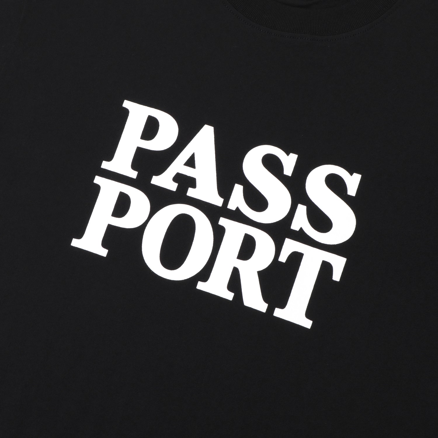 Introducing Range #46: The Pass-Port Official Stacked tee in black is made from 100% cotton and features a screen printed front graphic, finishing in the signature Pass-Port fit.