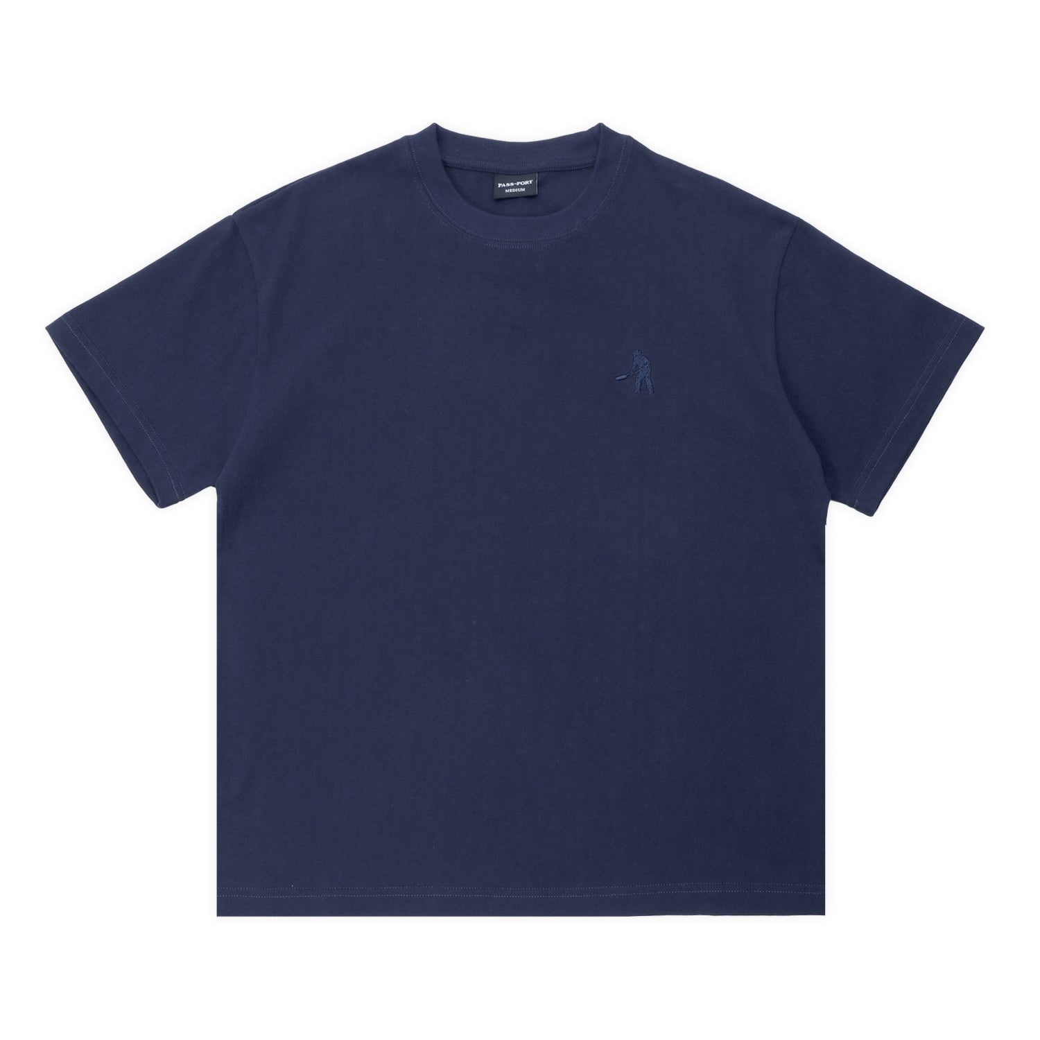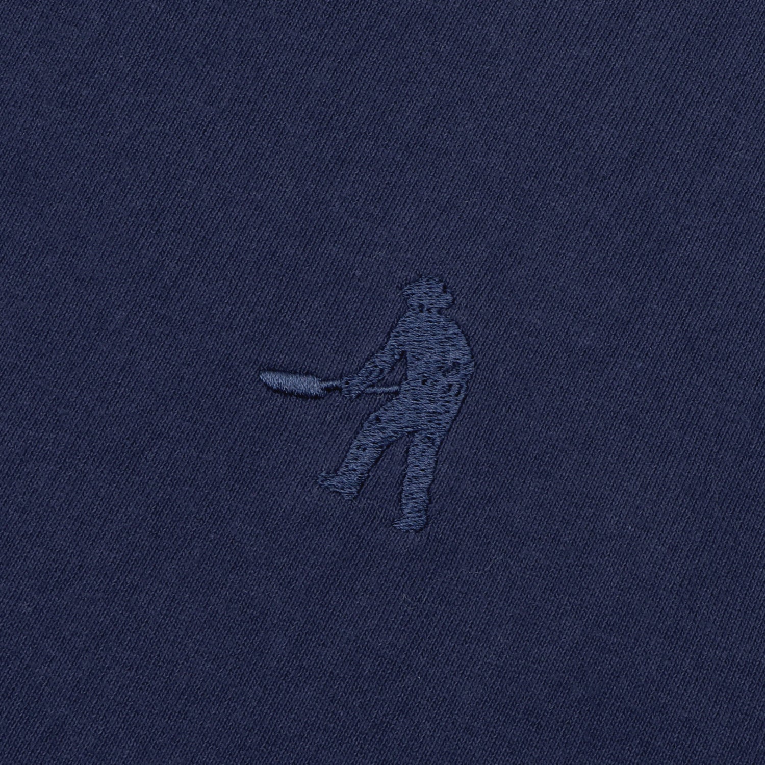 Pass~Port Solid Workers tee in navy for range #46. The Pass~Port Workers t-shirt is made from 280GSM cotton and features a direct tonal digger embroidery on front, finished in a boxy fit.